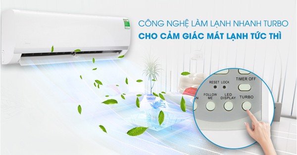 - Được tích hợp chế độ làm lạnh nhanh Turbo độc đáo, giúp làm mát không gian phòng nhanh chóng khi bật chỉ trong thời gian ngắn, điều hòa Media mang lại cảm giác thoải mái, dễ chịu cho bạn trong những ngày trời nóng bức.