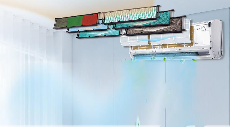 Điều hòa COSMO18CN được trang bị màng lọc có mật độ cao hơn so với điều hòa thông thường kết hợp cùng màng lọc kháng khuẩn catechin trà xanh và than hoạt tính, giúp tăng cường khả năng thanh lọc không khí, ức chế sự phát triển của vi khuẩn, nấm mốc, bảo vệ tối đa sức khỏe người dùng.