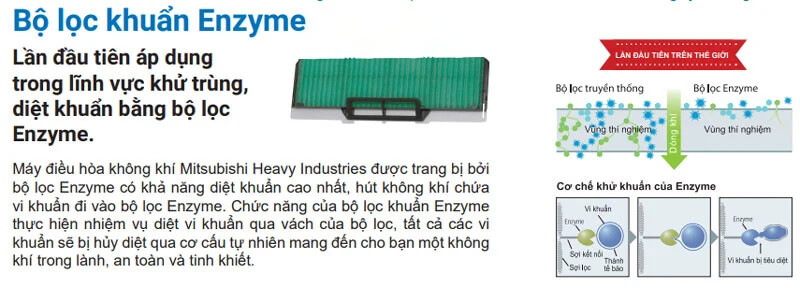 + Ngay trên dàn lạnh Điều hòa Mitsubishi Heavy inverter 2 chiều 24.000BTU SRK71ZRS W5/SRC71ZRS W5 được trang bị bộ lọc Enzyme tiêu diệt vi khuẩn đến 99%.