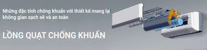 + Lồng quạt được xử lý kháng khuẩn, hạn chế nấm mốc và mầm bệnh tạo môi trường sạch và an toàn. Chức năng này sẽ ngăn chặn vi khuẩn gây hại và mùi hôi v.v... kể cả khi máy ngừng hoạt động thì công nghệ kháng khuẩn của lồng quạt vẫn hoạt động hết sức hiệu quả. Giúp người tiêu dùng không cần quá bận tâm về vấn đề vệ sinh máy.