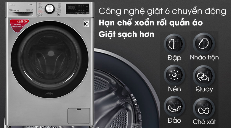 Công nghệ giặt 6 chuyển động sẽ mô phỏng theo các bước giặt tay của con người, giúp giặt quần áo được sạch hơn đồng thời giảm hư hại quần áo, giữ cho những bộ quần áo của bạn luôn bền đẹp.