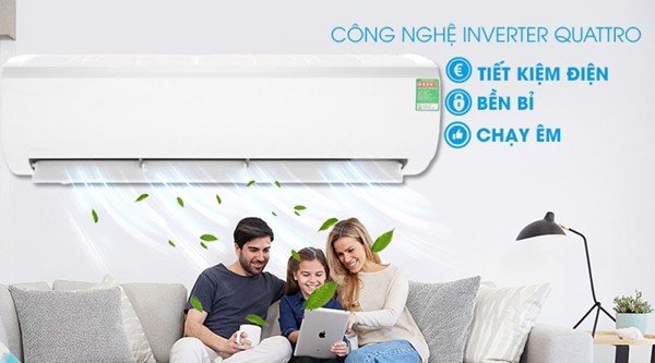 Hai là, điều hoà thông minh với nhiều tính năng phức hợp tạo nên sự tiện nghi cho người sử dụng. Một số chức năng thông minh như Hệ thống làm lạnh nhanh Turbo cho phép không gian lạnh ngay khi bật, chế độ cảm biến nhiệt Favorite cool thông minh cho phép nhiệt độ tùy chỉnh chuẩn xác, đơn giản, tính năng tiết kiệm điện inverter cho phép tiết kiệm tối đa nguồn điện tiêu thụ, tính năng tự động vệ sinh thân máy bảo vệ sức khỏe của người dùng,…