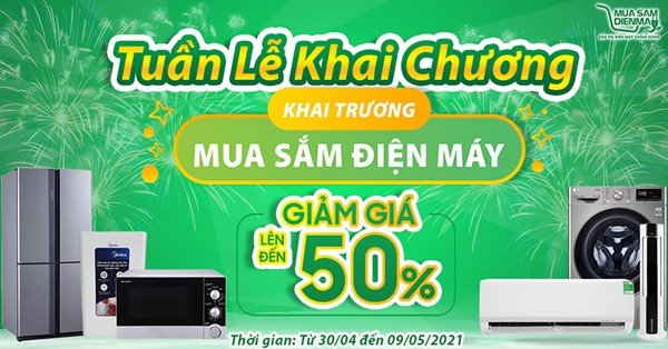 Nhân dịp này, Mua Sắm Điện Máy sẽ triển khai 1 chương trình Giảm giá trên quy mô lớn, kéo dài ngày đến hết 9/5 với hàng ngàn mặt hàng Điều hòa, Tủ lạnh, Máy giặt, Đồ gia dụng và Máy lọc nước,.. chính hãng cùng các khuyến mãi cực "HOT" mức giảm lên đến 50%.