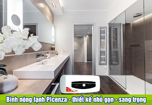 - Bình nóng lạnh Picenza gây ấn tượng tốt bởi thiết kế rất tinh tế, sang trọng, gần gũi với người tiêu dùng Việt. Hầu hết các mẫu mã, kiểu dáng của bình nóng lạnh Picenza đều khá nhỏ gọn kết hợp cùng các đường nét uốn lượn mềm mại, mang lại cho bạn cảm giác gần gũi, sự sang trọng cho không gian phòng tắm.